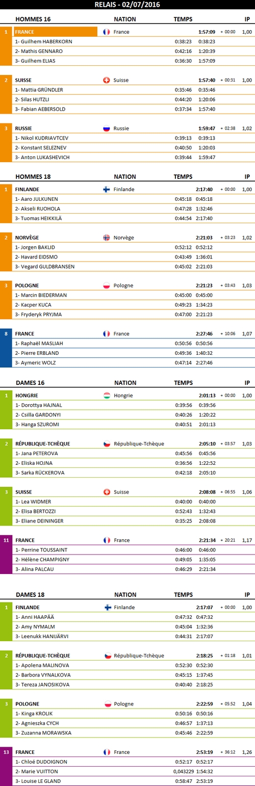 Télécharger les résultats officiels du relais
