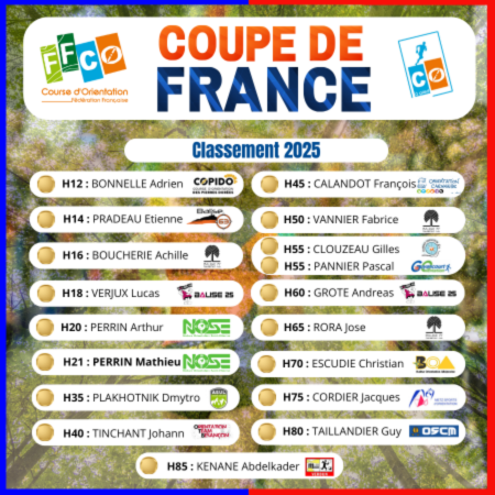 Les résultats de la Coupe de France 2025 de CO pédestre